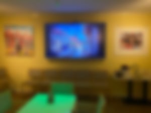 gemütliches Ambiente mit dimmbarem Licht und verschiedenen Zonen, 2 Ledersofas + Clubtisch